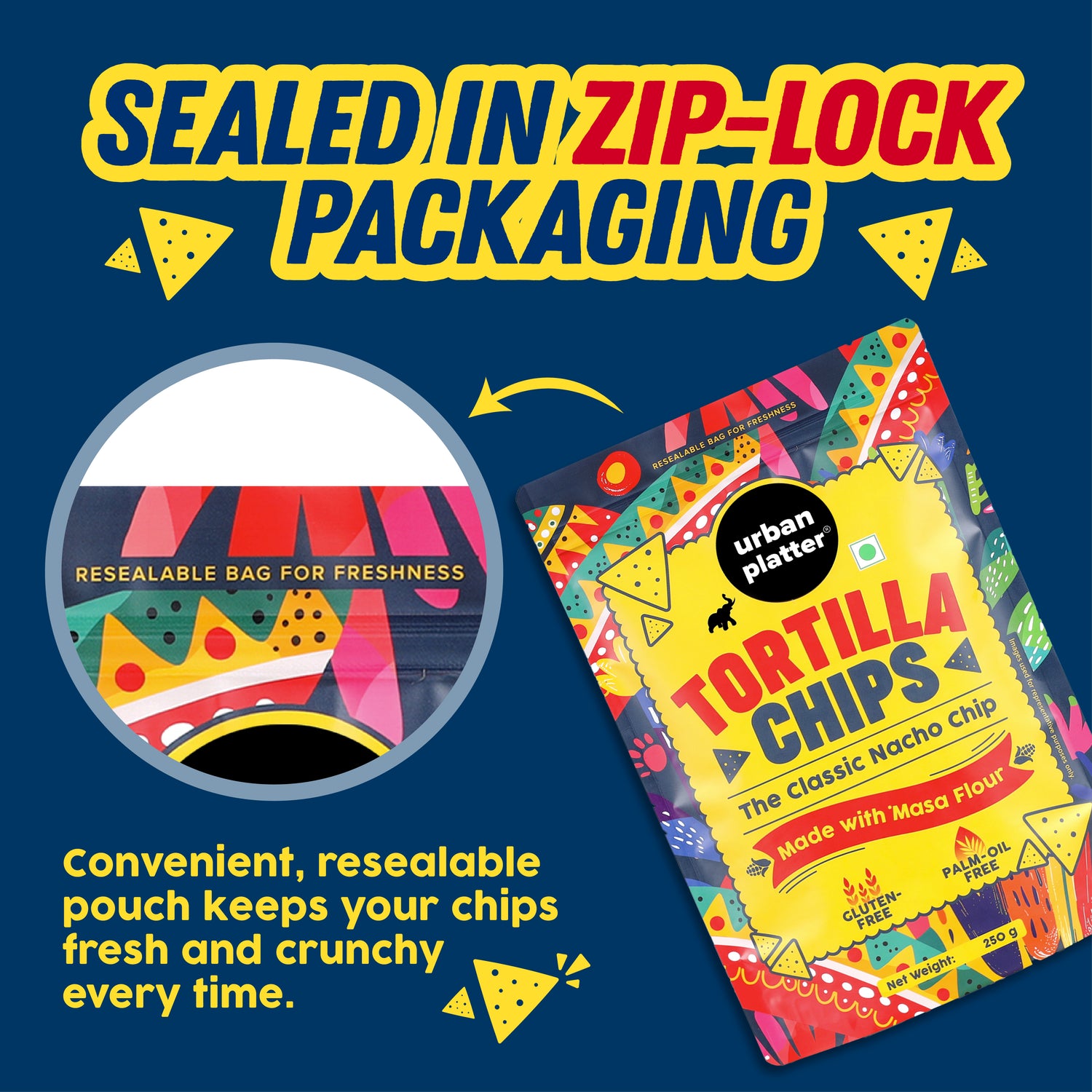 Urban Platter Tortilla Chips, 250g (Made with Masa Flour | Palm Oil Free | Gluten Free | Lightly Salted Nacho Chips)