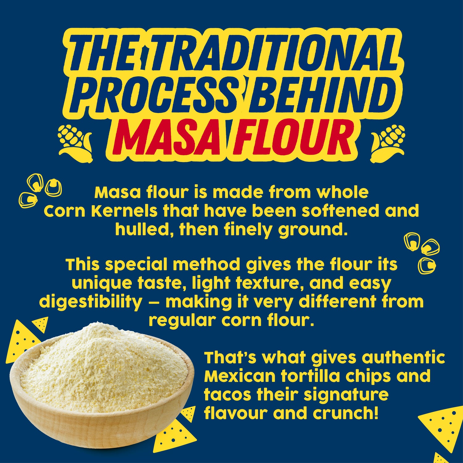 1. Uses Masa Flour: Corn processed the traditional way for better flavour, better crunch, and better digestibility.