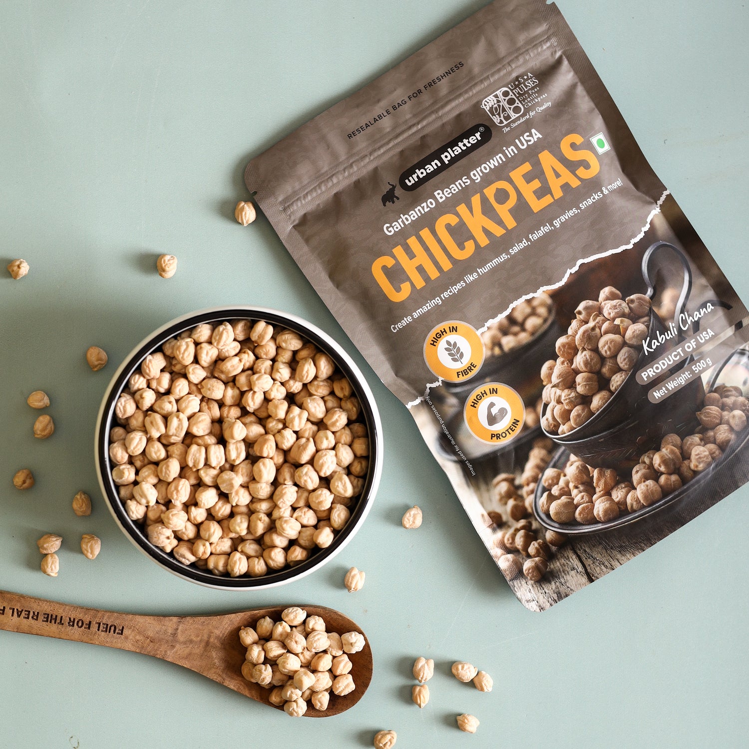 Urban Platter USA Chickpeas, 500g (Kabuli Chana | Garbanzo Beans | High in Fibre & Protein)